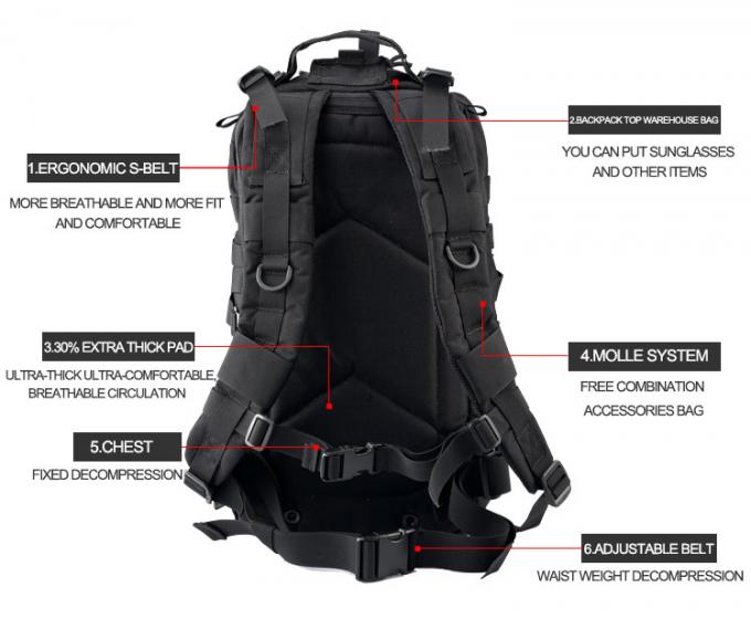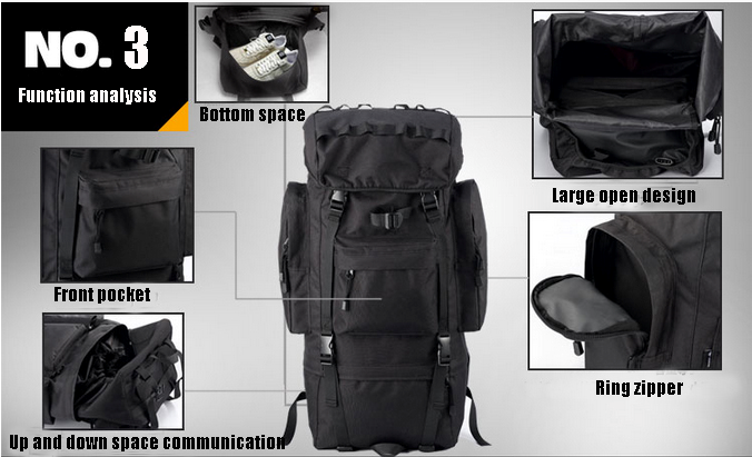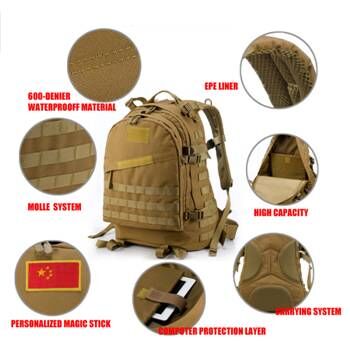 3. MOLLE-SYSTEEM: De het systeemfunctie van de rugzakstop is het aantal te dragen te verhogen punten, gemakkelijk om onregelmatige hangende punten te vervoegen. Een professionele alpinismerugzak, insteeksysteem is essentieel. Kan het rugzak externe systeem in specifieke hoogste gehangen gehangen, kant, terug gehangen, gehangen bodem worden verdeeld, gewoonlijk gebruikend vast punt of barbevestiging. De gebruikers moeten niet zich over reis, reis ongerust maken, reis, die het probleem van ontoereikende ruimte wandelen.