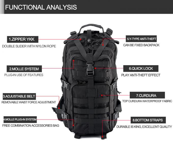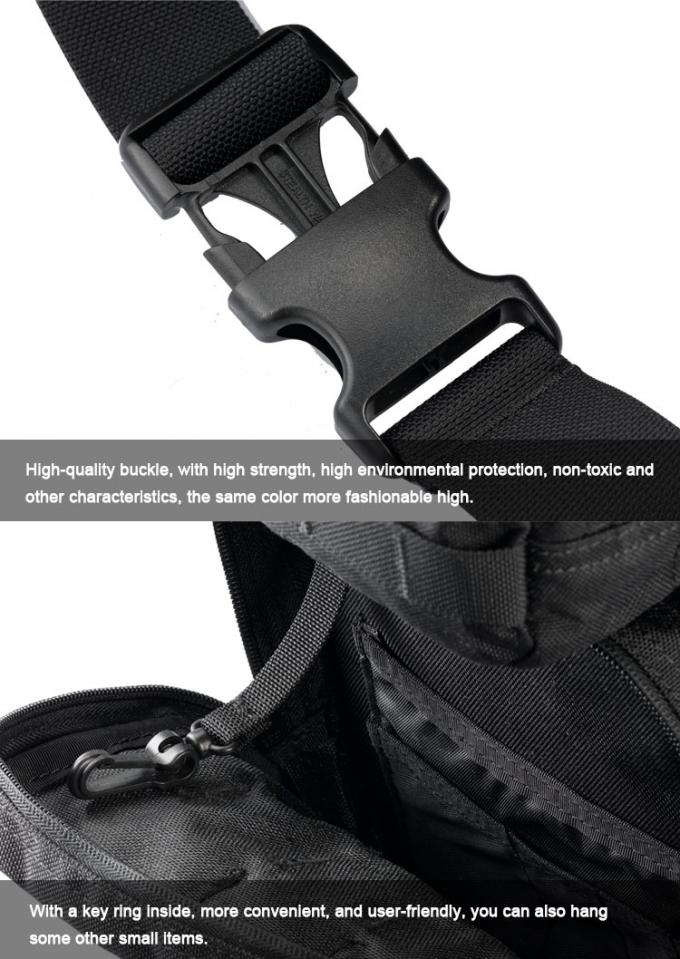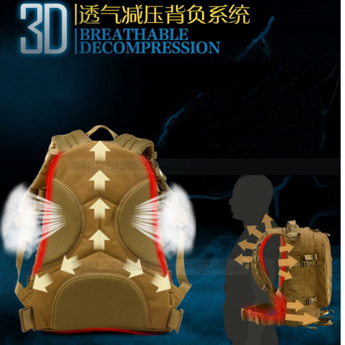 2. Maak functie waterdicht: 600D het materiaal van de polyesterrugzak, de oppervlakte heeft super waterdichte functie, met 420D de nylon dekking van de rugzakregen daar, waterdicht verdubbelt, openlucht zeer aangewezen toerisme en militair gebruik.